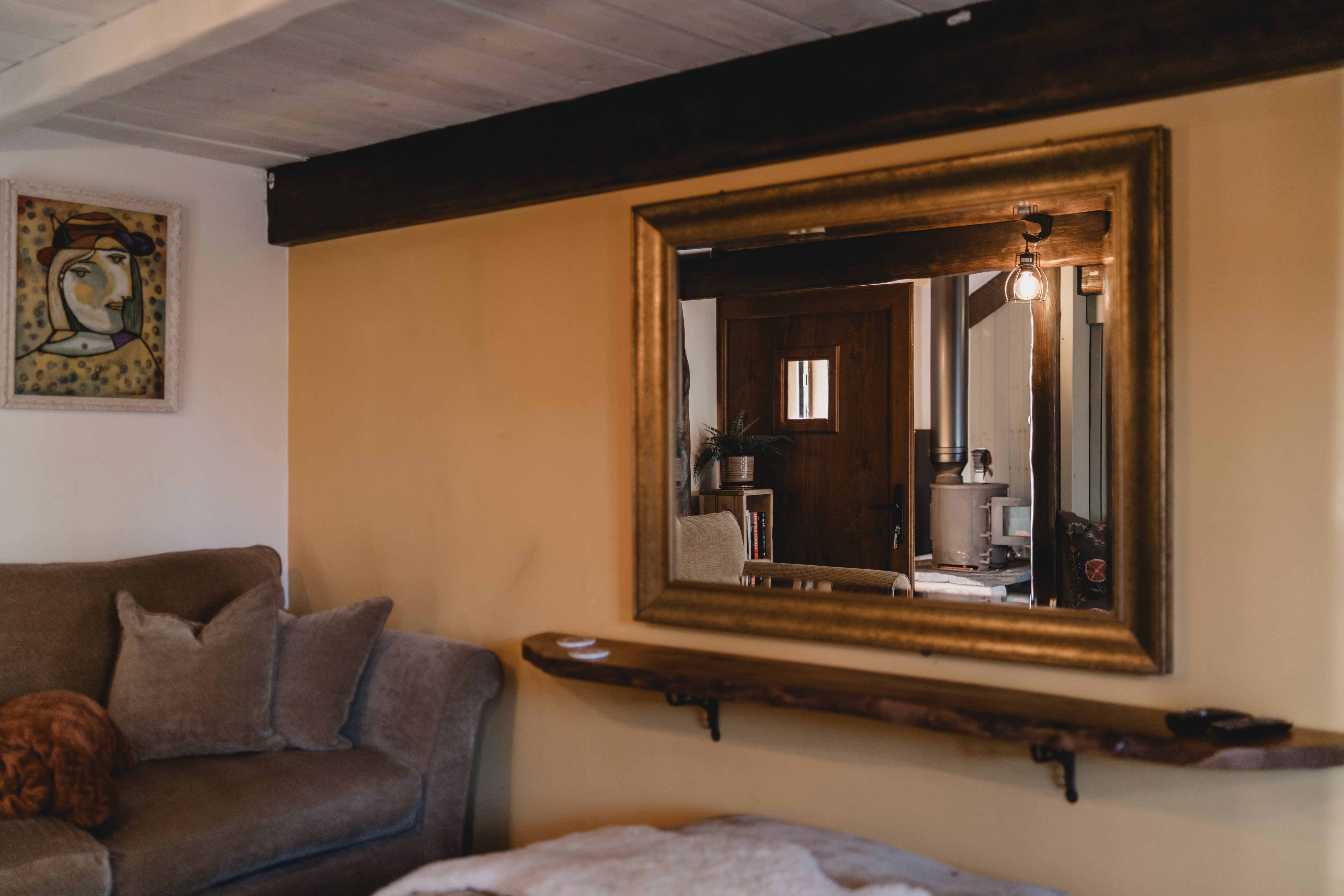 "Very nice space, even more floorspace than expected! really looks and feels the part. can get a bit chilly but the fireplace works a treat and electric heater is a nice amenity. make sure to say hello to the dog!"